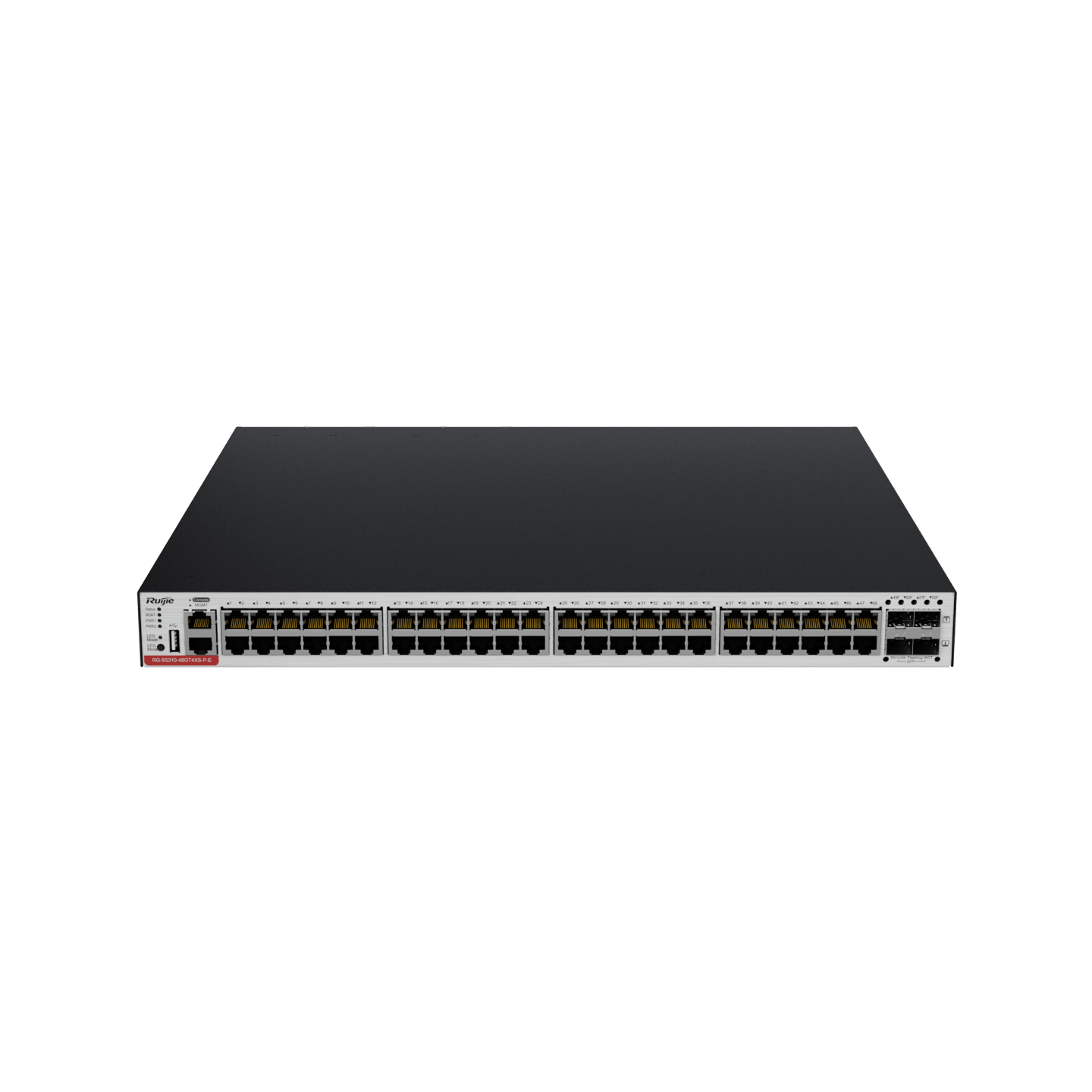 เป็นสวิตช์ Layer 3 ระดับองค์กรที่มาพร้อม 48 พอร์ต RJ45 Gigabit รองรับ PoE+ และ 4 พอร์ต SFP+ 10G เหมาะสำหรับการใช้งานในเครือข่ายองค์กรขนาดใหญ่ที่ต้องการความเร็วและเสถียรภาพสูง พร้อมฟีเจอร์จัดการผ่าน Ruijie Cloud, CLI, Web UI และ SNMP