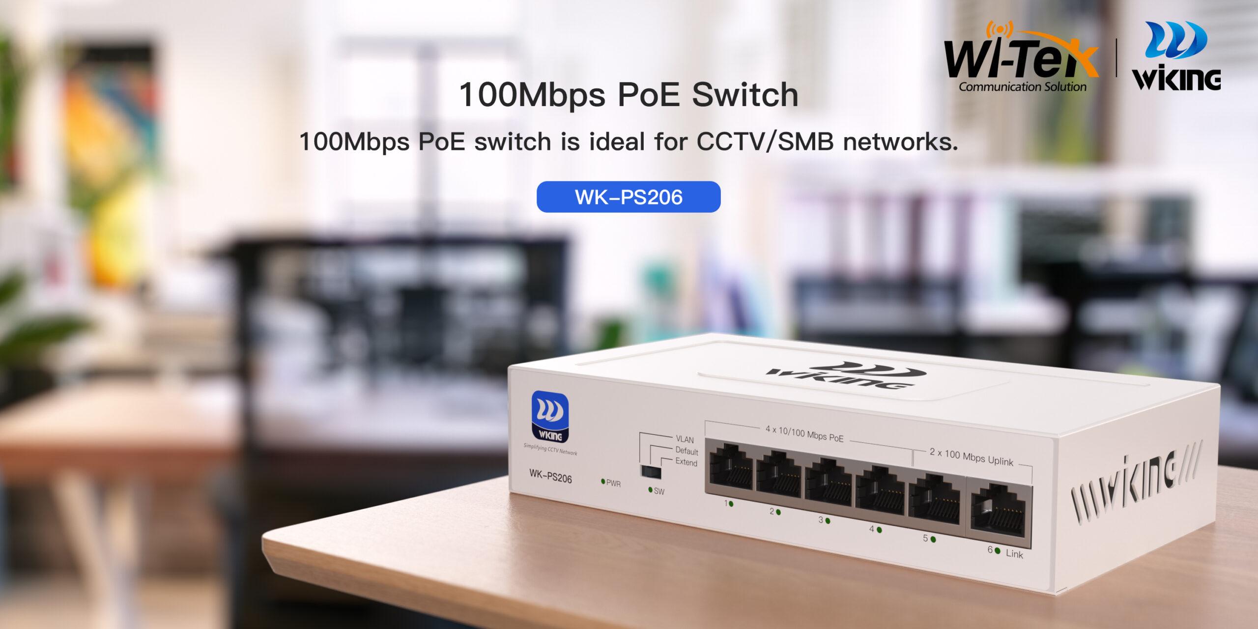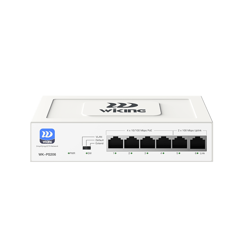 WK-PS206 เป็นสวิตช์ PoE ประสิทธิภาพสูงที่ออกแบบมาสำหรับระบบเฝ้าระวัง กล้อง IP และอุปกรณ์เครือข่ายขนาดเล็กถึงกลาง โดยมาพร้อมกับ 4 พอร์ต PoE 10/100 Mbps, 2 พอร์ต uplink 10/100 Mbps, รองรับมาตรฐาน IEEE 802.3af/at พร้อมงบประมาณ PoE รวม (PoE budget) ถึง 45 W และโหมด Extend ที่รองรับการส่งข้อมูล+พลังงานได้ยาวถึง 250 เมตร ช่วยให้การติดตั้งอุปกรณ์ระยะไกลเป็นไปได้ง่ายและยืดหยุ่นยิ่งขึ้น