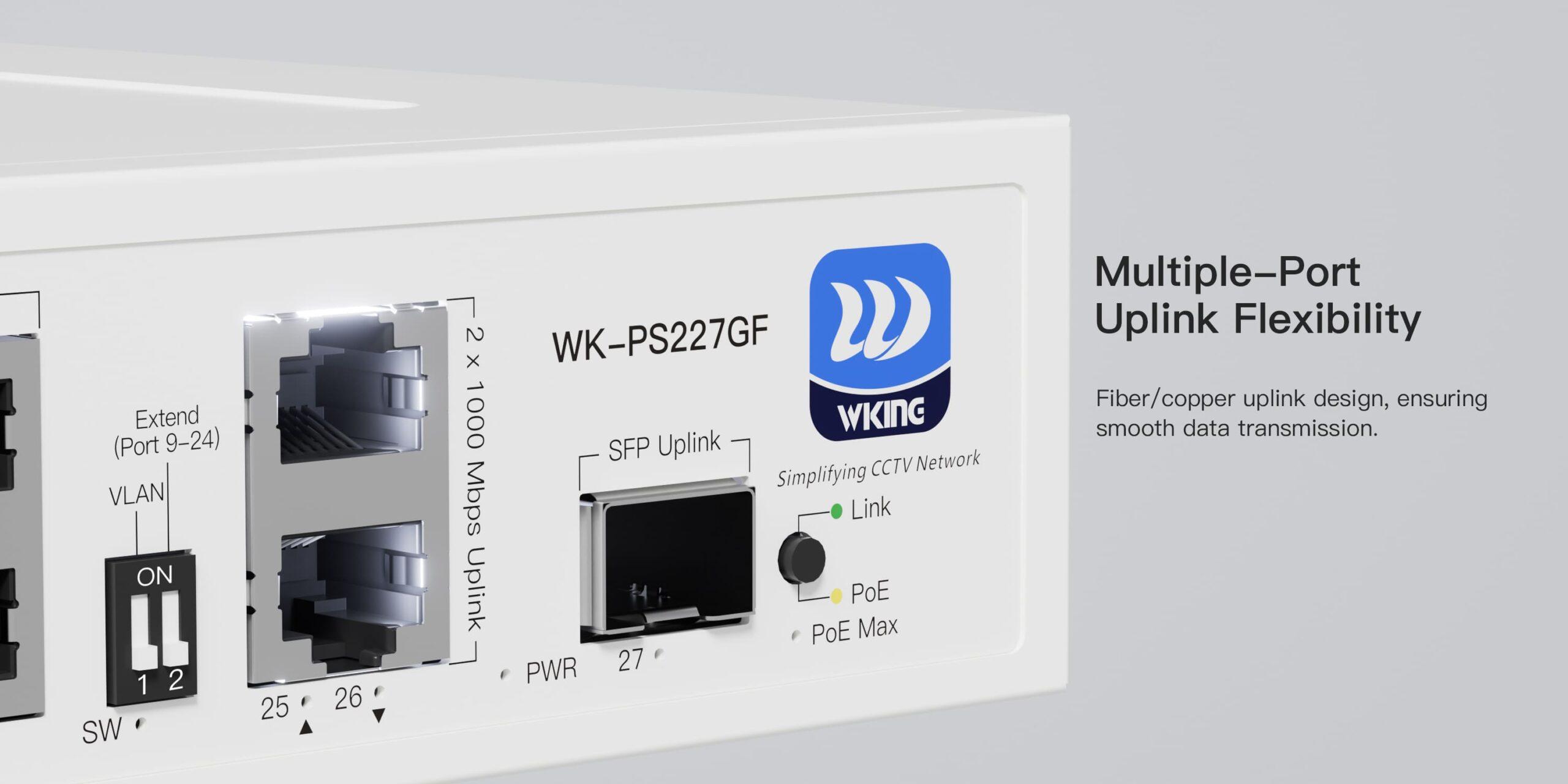 WK-PS227GF เป็นสวิตช์แบบ Fast Ethernet PoE 24 พอร์ต พร้อมพอร์ตอัปลิงค์แบบ Gigabit อีก 2 พอร์ต และช่อง SFP อีก 1 ช่อง ออกแบบมาสำหรับงานระบบเฝ้าระวัง (CCTV/IP Camera) หรือโครงข่าย LAN ภายในสำนักงานขนาดกลาง-ใหญ่ ด้วยพลัง PoE ที่รองรับสูงถึง ~270 วัตต์ ช่วยให้จ่ายไฟให้กับกล้องหรืออุปกรณ์ PoE ได้อย่างเพียงพอ พร้อมฟีเจอร์ระยะส่งข้อมูลยาวพิเศษถึง 250 เมตรสำหรับพอร์ต PoE บางพอร์ต เพิ่มความยืดหยุ่นในการติดตั้งในพื้นที่ที่สายยาวกว่าเดิม